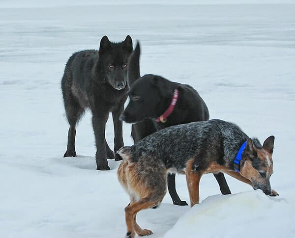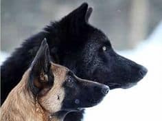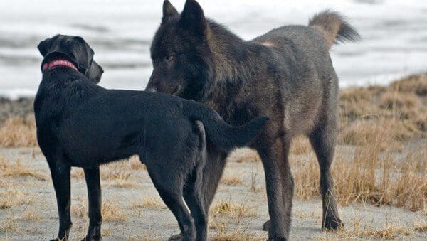 Dog meets wolf