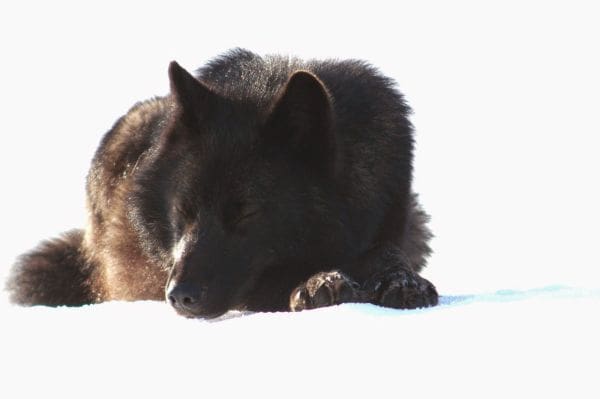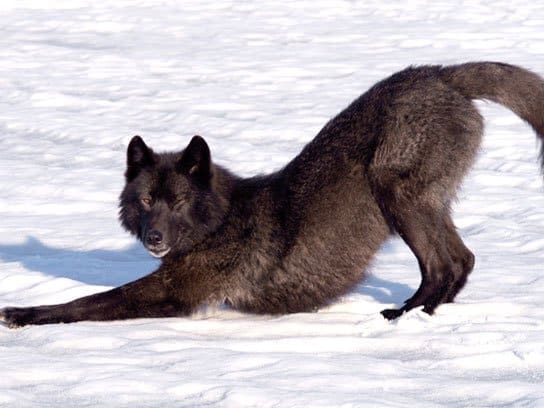 After a few moments Dakotah turned and walked back to her family as the wolf, who Nick’s wife began to refer to as “Romeo” watched her go. A couple days later while out for a ski with Dakotah, Nick saw Romeo again. He ran out of the woods directly to them, and then another strange thing happened – Romeo and Dakotah stated to play. In Nick’s own words, this is what happened: “As I watched open-mouthed, they switched to pawing and mouth-fighting like yearlings, interspersed with the wolf’s gravity-defying leaps and spins.”